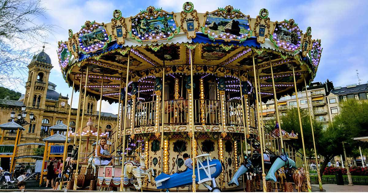 The share image for this article: A Merry-go-round in San Sebastian, Spain.